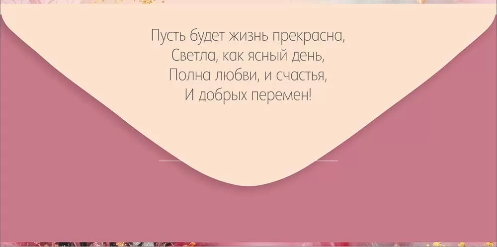 Стильный конверт для денег с надписью «С юбилеем!» идеально подходит в качестве подарка или дополнения к подарку. Конверт украшен яркой иллюстрацией, четкое полноцветное изображение покрыто глянцевым ВД-лаком. На конверте изображены цветы нежного белого, розового и персикового цвета на пыльно-розовом фоне. На внутреннем клапане написано небольшое пожелание. Размеры – 168х84 мм. На нашем сайте можно заказать конверты для денег оптом. В одной упаковке 10 шт.