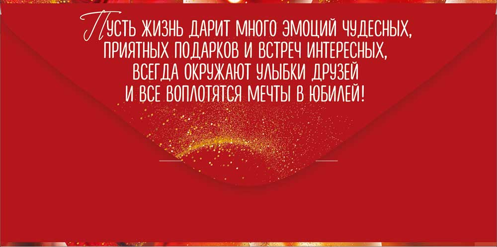 Конверт для денег формата «евро» предназначен для вручения денежного подарка на юбилей и ориентирован на использование в розничной продаже и оптовых поставках для торговых сетей, сувенирных отделов и компаний, формирующих ассортимент поздравительной продукции. Изделие изготовлено из плотного картона, что обеспечивает устойчивость к изгибам, разрывам и истиранию при транспортировке и хранении, а также сохраняет форму при вложении купюр или подарочных сертификатов. Размер конверта 168 × 84 мм соответствует стандартным параметрам большинства банковских купюр, поэтому деньги размещаются внутри без сгибов и деформации. Лицевая сторона оформлена полноцветным изображением подарочной коробки, красных роз и декоративных элементов в тёплой красно-золотистой гамме с надписью «В день Юбилея», что делает изделие тематически привязанным к юбилейным датам и позволяет использовать его как самостоятельный элемент оформления подарка. Внутри предусмотрен печатный поздравительный текст, упрощающий подготовку к вручению и сокращающий время обслуживания покупателей при массовых закупках к корпоративным и календарным событиям. Отделка без дополнительных декоративных покрытий облегчает укладку в транспортные короба, снижает риск повреждения поверхности при пересортице и позволяет рационально использовать складское пространство. Конверт удобен для выкладки на полке и в напольных или настольных стойках благодаря вытянутому вертикальному формату, хорошо заметен в витринной экспозиции и сочетается с широким ассортиментом подарочных пакетов и упаковочной бумаги. Плотный картонный материал сохраняет первоначальный внешний вид при многократных перекладках и подходит для длительного сезонного хранения остатков тиража. В упаковке 10 штук, что удобно для планирования оптовых закупок, формирования партий по артикулам и учёта при инвентаризации.
