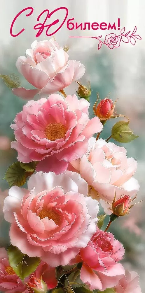 Конверт для денег «С Юбилеем!» (розовые розы)
