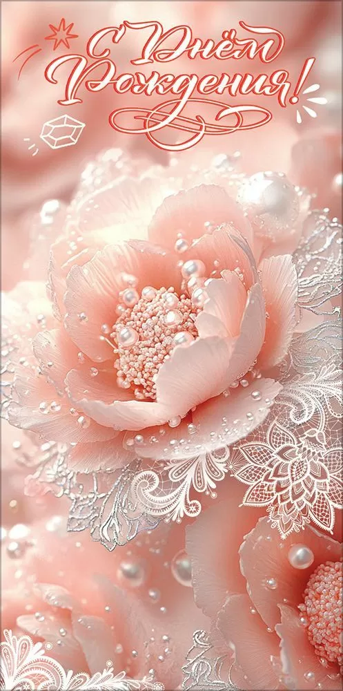 Конверт для денег «С Днём рождения!» (декоративный цветок с жемчугом, кружева)