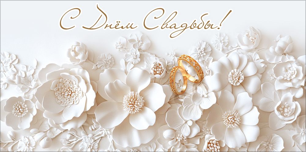Конверт для денег «С Днём Свадьбы!» (цветочный барельеф, кольца)