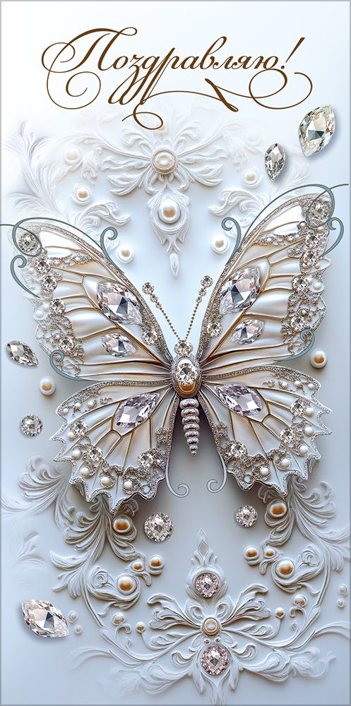 Конверт для денег "Поздравляю!" (бабочка-брошь со стразами)