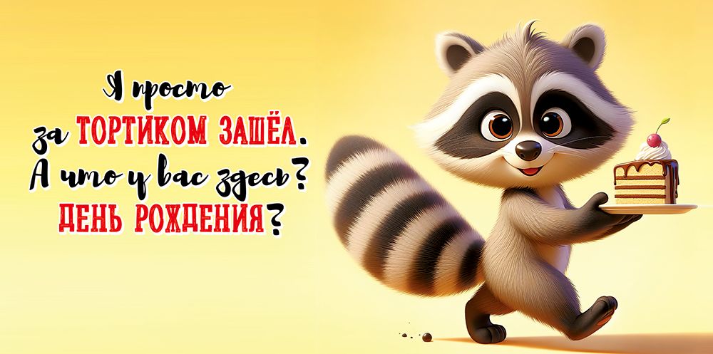Конверт для денег «С Днем рождения! Я просто за тортиком зашел» (енот с тортом)