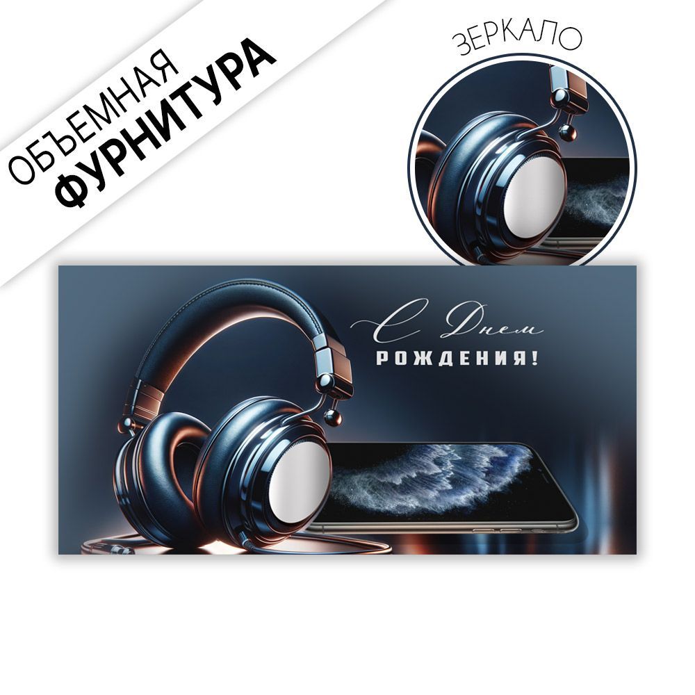 Конверт для денег «С Днем рождения!» (наушники, телефон)
