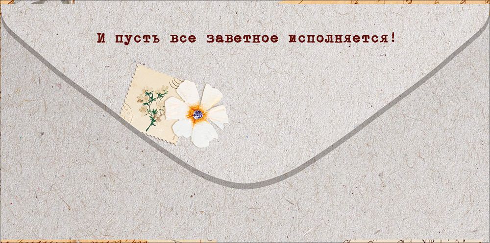 Поздравительный конверт для денег «С Днем Рождения!» со стильным дизайном преобразит любое торжество. Внешний вид конверта напоминает коллаж, составленный из различных кусочков событий из жизни: марки, обрывки писем, сухоцветы, счастливый билетик. Все это – символы каких-то важных моментов, которые хочется сохранить на память. Приглушенные оттенки составляют неброскую, но интересную гамму. Курсивный шрифт надписей придает общему внешнему виду элегантность и эффект рукописного текста. Также внутри получатель найдет добрые и приятные пожелания. Данный дизайнерский конверт для денег идеально подойдет в качестве основного подарка или как приятное дополнение к нему. Внутрь можно поместить любую денежную сумму, подарочный сертификат или билеты на концерт. Благодаря прочным материалам производства и качеству печати изделие удобно транспортировать и хранить – оно надолго сохранит свой яркий внешний вид, не помнется и не выцветет, что делает его не только хорошим подарком, но и прекрасным памятным сувениром!