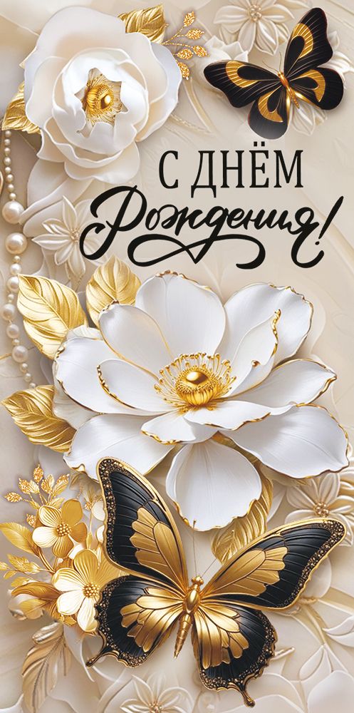 Конверт для денег «С днём рождения!» (цветы и бабочки)