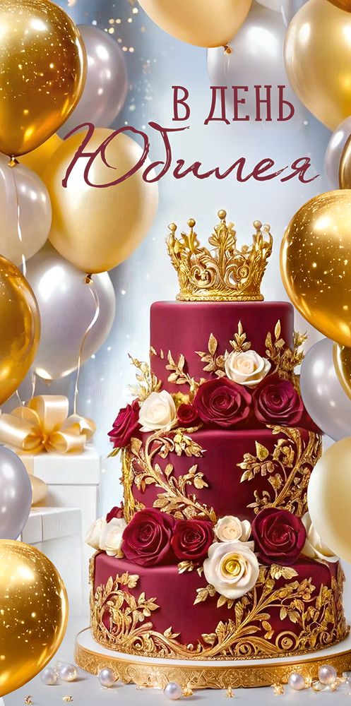 Стильный конверт для денег с надписью «В день юбилея» идеально подходит в качестве подарка или дополнения к подарку. Яркая иллюстрация привлекает внимание. На конверте изображены богато украшенный трехъярусный торт, увенчанный золотой короной, и яркие золотые и серебряные воздушные шары. Внутри, на клапане, есть небольшой текст-пожелание. Изделие изготовлено из прочного материала, который хорошо держит форму и не помнется при транспортировке и использовании. Благодаря высокому качеству печати и защитному покрытию краски не выцветут долгое время. Размеры – 168х84 мм. На нашем сайте можно заказать конверты для денег оптом. В одной упаковке 10 шт.