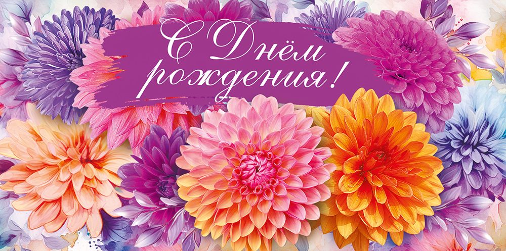 Конверт для денег «С Днем рождения!» (разноцветные георгины)