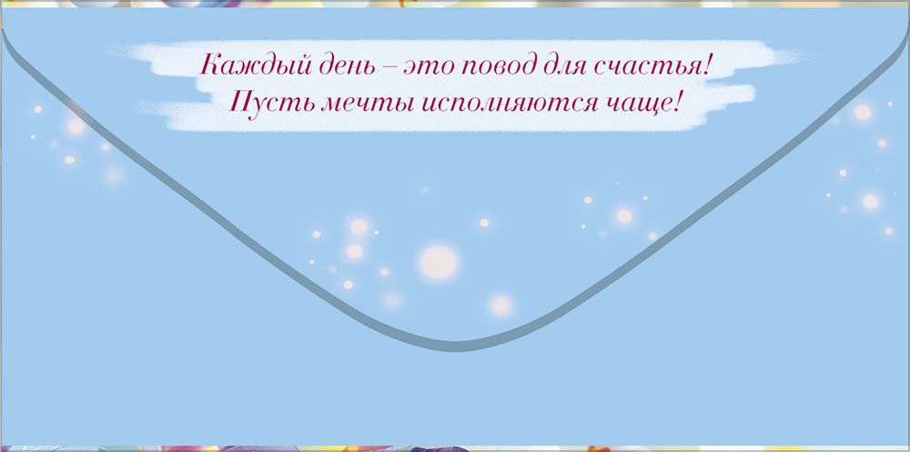 Стильный конверт для денег с надписью «С днем рождения!» идеально подходит в качестве подарка или дополнения к подарку. Нежная иллюстрация с белыми и голубыми цветами притягивает внимание, на внутреннем клапане написаны слова-пожелания. Материал – плотный картон. Размеры – 168х84 мм. На нашем сайте можно заказать конверты для денег оптом. В одной упаковке 10 шт.