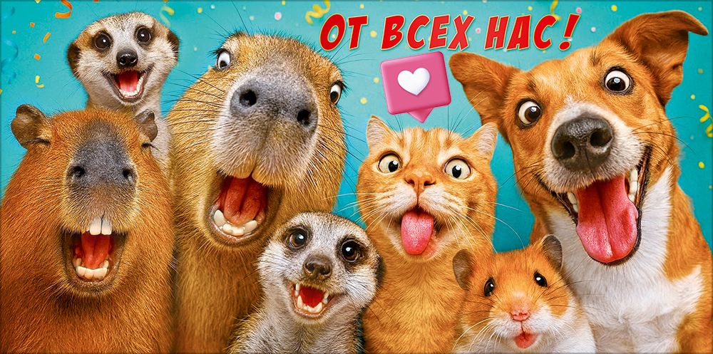 Конверт для денег «От всех нас!» (кот, собака, капибары, суслики, хомяк)