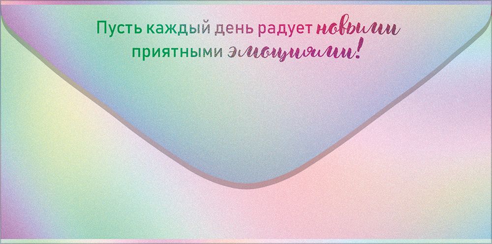 Конверт для денег с надписью «С наилучшими пожеланиями!» идеально подходит в качестве подарка или дополнения к подарку. Яркая иллюстрация с отделкой золотой фольгой выглядит очень эффектно! На конверте изображена оригинальная надпись "С наилучшими пожеланиями!" на радужном фоне. На клапане есть небольшой текст-пожелание. Изделие изготовлено из прочного материала, который хорошо держит форму и не помнется при транспортировке и использовании. Благодаря высокому качеству печати и защитному покрытию краски не выцветут долгое время. Размеры – 168х84 мм. На нашем сайте можно заказать конверты для денег оптом. В одной упаковке 10 шт.