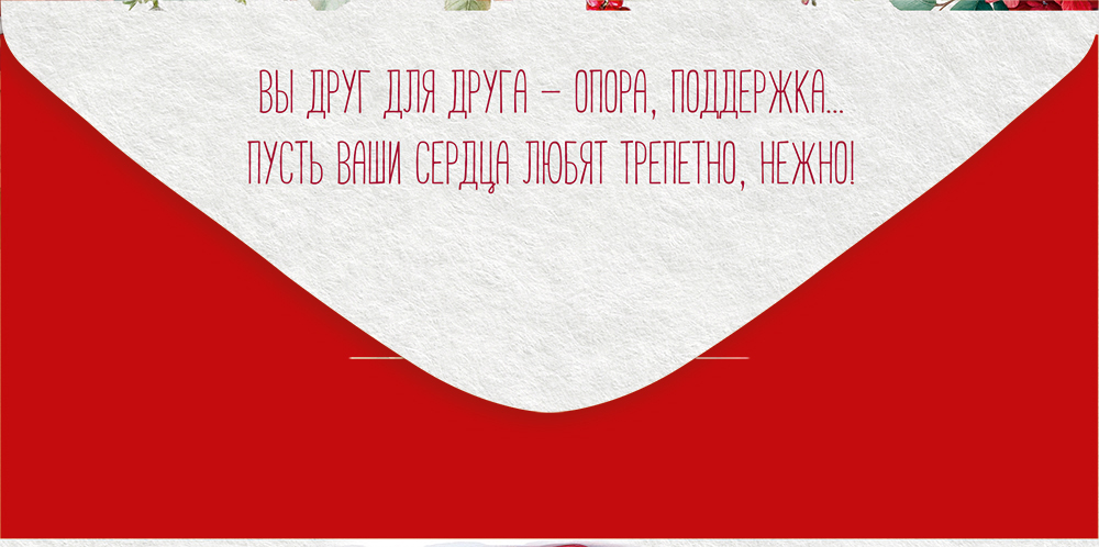 Поздравительный конверт для денег «С юбилеем свадьбы!» с праздничным романтическим дизайном станет прекрасным дополнением к подарку для семейной пары. В оформлении использована элегантная цветочная композиция из алых роз и декоративных ягод, дополненная лентой и изящными деталями. Праздничное настроение усиливают бокалы с игристым напитком, символизирующие торжество любви и семейного счастья. Также внутренний клапан украшают тёплые стихи. Данный дизайнерский конверт для денег идеально подойдет в качестве основного подарка или как приятное дополнение к нему. Внутрь можно поместить любую денежную сумму, подарочный сертификат или билеты на концерт. Благодаря прочным материалам производства и качеству печати изделие удобно транспортировать и хранить – оно надолго сохранит свой яркий внешний вид, не помнется и не выцветет, что делает его не только хорошим подарком, но и прекрасным памятным сувениром!