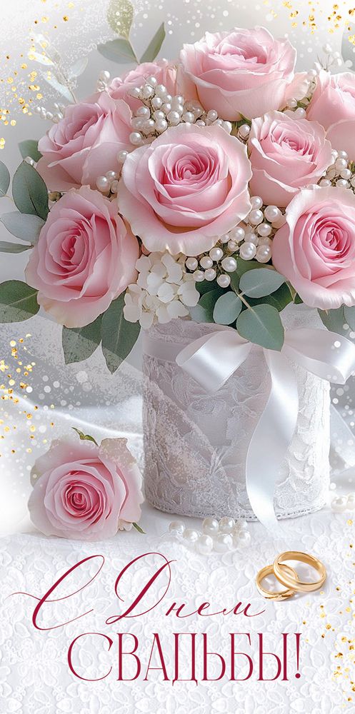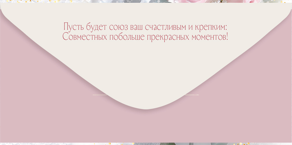Поздравительный конверт для денег «С Днем свадьбы!» с нежным цветочным оформлением подчеркнет торжественность и романтику праздничного события. Основу композиции составляет изысканный букет из розовых роз, украшенный декоративными веточками и жемчужными элементами. Легкие золотистые акценты, кольца и светлый фон придают дизайну элегантность и праздничное настроение. Также внутри находится текст с приятными пожеланиями. Данный дизайнерский конверт для денег идеально подойдет в качестве основного подарка или как приятное дополнение к нему. Внутрь можно поместить любую денежную сумму, подарочный сертификат или билеты на концерт. Благодаря прочным материалам производства и качеству печати изделие удобно транспортировать и хранить – оно надолго сохранит свой яркий внешний вид, не помнется и не выцветет, что делает его не только хорошим подарком, но и прекрасным памятным сувениром!