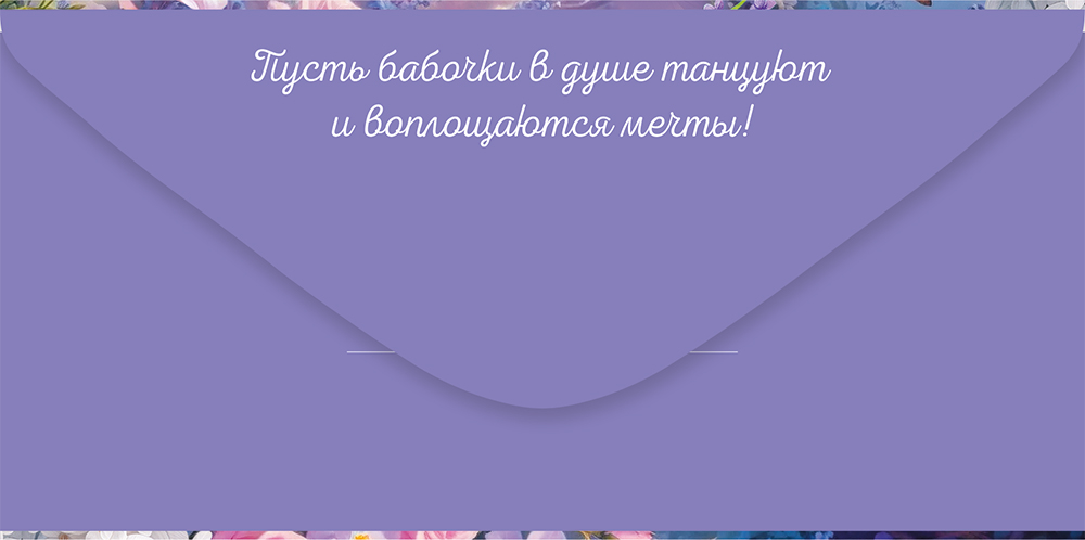Стильный конверт для денег с надписью «В день рождения!» идеально подходит в качестве подарка или дополнения к подарку. Иллюстрация с отделкой радужными блестками в лаке выглядит очень эффектно! На конверте изображены чудесные цветы и бабочки в волшебном саду. На клапане есть небольшой текст-пожелание. Изделие изготовлено из прочного материала, который хорошо держит форму и не помнется при транспортировке и использовании. Благодаря высокому качеству печати и защитному покрытию краски не выцветут долгое время. Размеры – 168х84 мм. На нашем сайте можно заказать конверты для денег оптом. В одной упаковке 10 шт.
