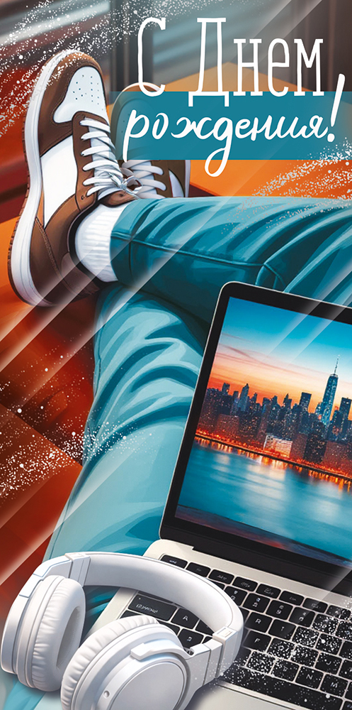 Конверт для денег "С Днем рождения!" (ноги, ноутбук, наушники)