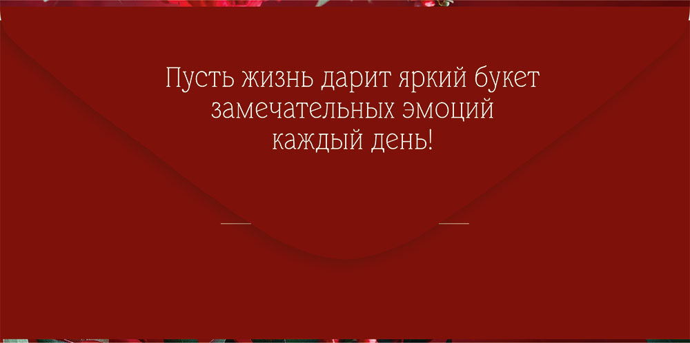 Поздравительный конверт для денег «В день Юбилея» с ярким дизайном преобразит любое торжество. Центром композиции является роскошный букет пышных пионов. Насыщенный винный оттенок делает общий внешний вид особенно привлекательным. В левом верхнем углу расположена поздравительная надпись, выполненная изящным шрифтом. Также внутри находится текст с приятными пожеланиями. Данный дизайнерский конверт для денег идеально подойдет в качестве основного подарка или как приятное дополнение к нему. Внутрь можно поместить любую денежную сумму, подарочный сертификат или билеты на концерт. Благодаря прочным материалам производства и качеству печати изделие удобно транспортировать и хранить – оно надолго сохранит свой яркий внешний вид, не помнется и не выцветет, что делает его не только хорошим подарком, но и прекрасным памятным сувениром!