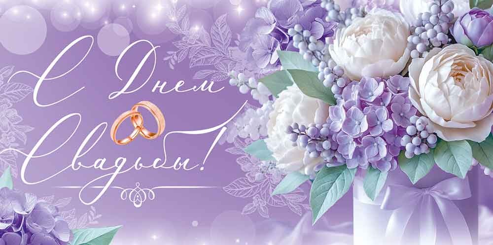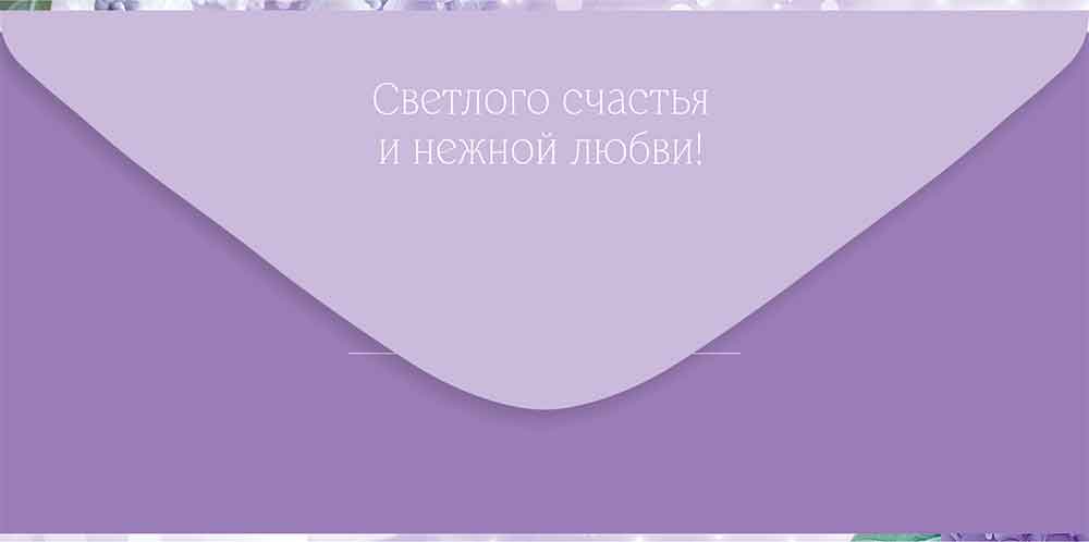 Поздравительный конверт для денег «С Днем свадьбы!» с волшебным дизайном в лавандовых оттенках преобразит любое торжество. В правой части конверта изображен букет белых пионов и фиолетовых гортензий в подарочной круглой коробке. Фон оформлен круглыми бликами света и полупрозрачными ботаническими узорами. Изображение двух золотых обручальных колец символизирует крепкую связь любящих сердец. Также внутри находится текст с приятными пожеланиями. Данный дизайнерский конверт для денег идеально подойдет в качестве основного подарка или как приятное дополнение к нему. Внутрь можно поместить любую денежную сумму, подарочный сертификат или билеты на концерт. Благодаря прочным материалам производства и качеству печати изделие удобно транспортировать и хранить – оно надолго сохранит свой яркий внешний вид, не помнется и не выцветет, что делает его не только хорошим подарком, но и прекрасным памятным сувениром!