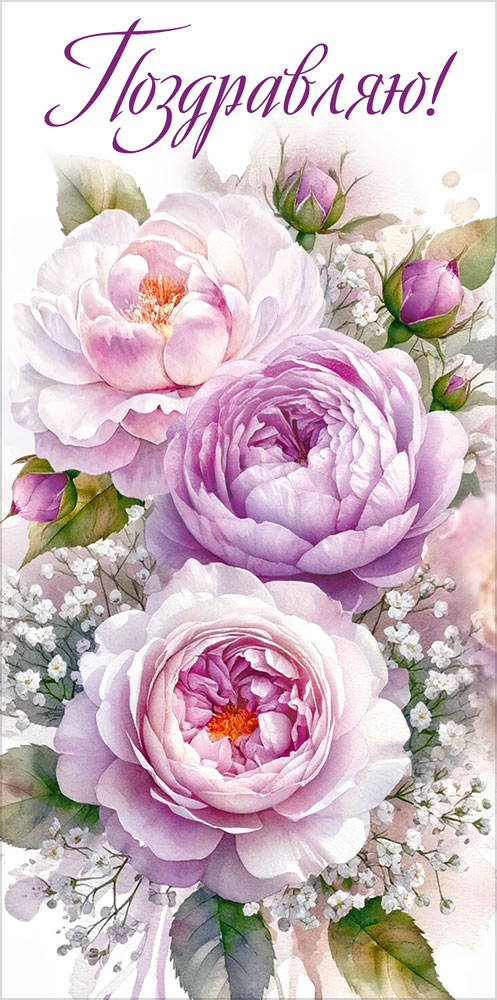 Конверт для денег "Поздравляю!" (розово-сиреневые розы)