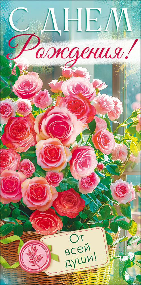 Конверт для денег "С Днем Рождения!" (розы в корзине)