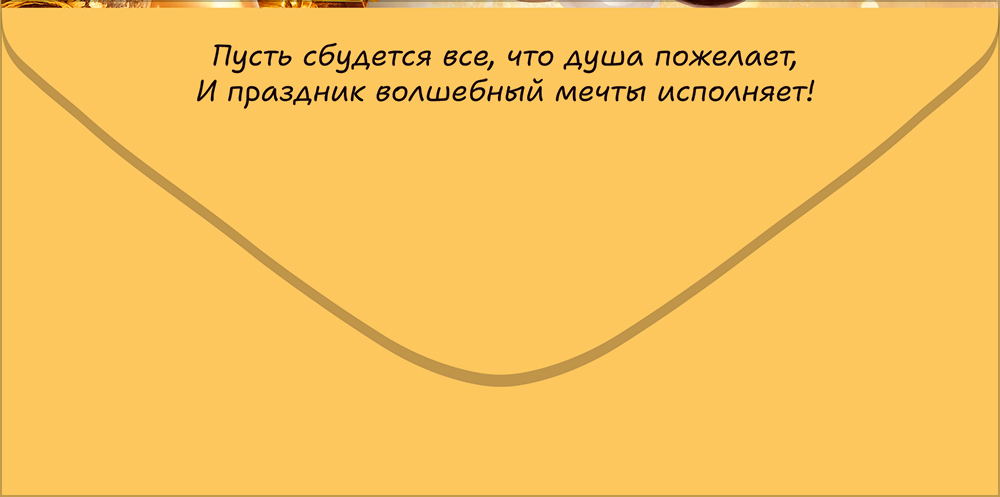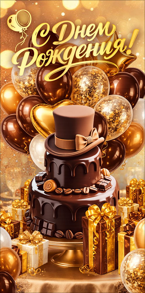 Поздравительный конверт для денег «С Днем Рождения!» с элегантным дизайном добавит изысканности любому торжеству. На конверте изображен роскошный шоколадный торт с подарками и воздушными шарами, что символизирует праздничное настроение. Золотистые и бронзовые оттенки создают атмосферу тепла и уюта. Также внутри находится текст с приятными пожеланиями. Данный дизайнерский конверт для денег идеально подойдет в качестве основного подарка или как приятное дополнение к нему. Внутрь можно поместить любую денежную сумму, подарочный сертификат или билеты на концерт. Благодаря прочным материалам производства и качеству печати изделие удобно транспортировать и хранить – оно надолго сохранит свой яркий внешний вид, не помнется и не выцветет, что делает его не только хорошим подарком, но и прекрасным памятным сувениром!