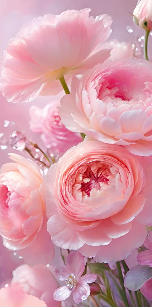 Конверт для денег без надписи (розовые ранункулюсы)