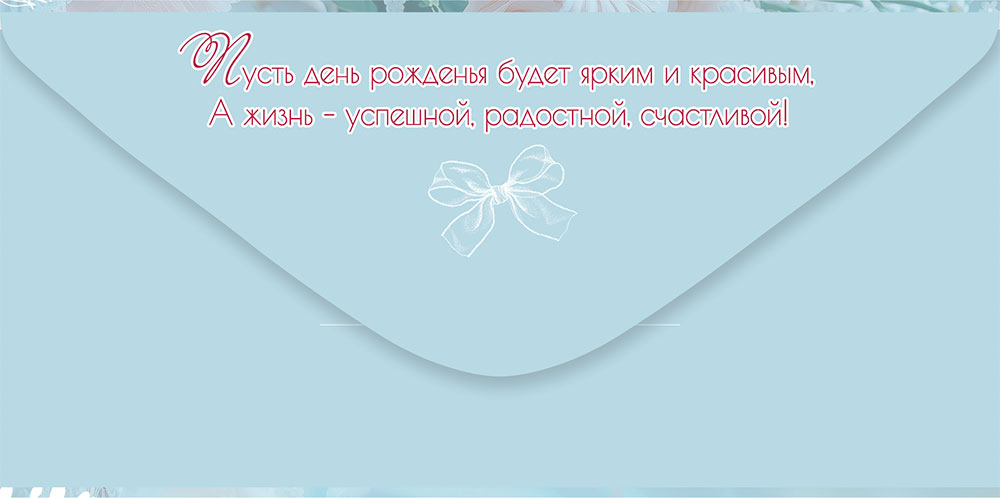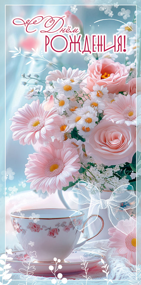 Конверт для денег "С Днём рождения!" (букет из разных цветов с бантом и чашка с блюдцем)