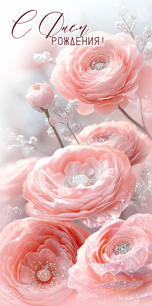 Конверт для денег "С Днём рождения!" (крупные цветки ранункулюсов)