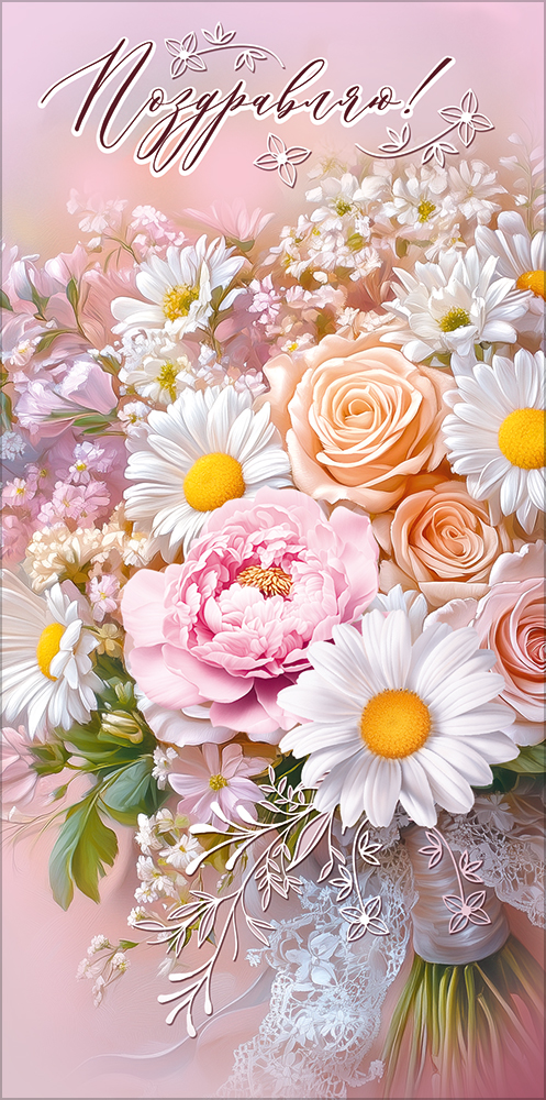 Конверт для денег "Поздравляю!" (букет из роз и ромашек)