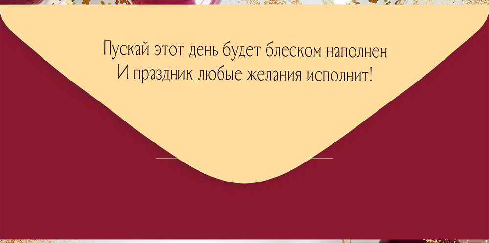 Поздравительный конверт для денег «В День рождения» с ярким дизайном преобразит любое торжество. Изделие украшает изображения воздушных шаров в золотых и алых оттенках. Сверкающие блестки дополняют праздничный сюжет. Такой внешний вид поможет создать нужное настроение и порадовать именинника или именинницу! Также внутри находится текст с приятными пожеланиями. Данный дизайнерский конверт для денег идеально подойдет в качестве основного подарка или как приятное дополнение к нему. Внутрь можно поместить любую денежную сумму, подарочный сертификат или билеты на концерт. Благодаря прочным материалам производства и качеству печати изделие удобно транспортировать и хранить – оно надолго сохранит свой яркий внешний вид, не помнется и не выцветет, что делает его не только хорошим подарком, но и прекрасным памятным сувениром!