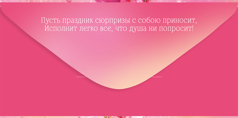 Поздравительный конверт для денег «С Днем рождения!» с ярким цветочным дизайном преобразит любое торжество. Композиция из шаров и цветов задает праздничное настроение. Мягкие розовые оттенки делают оформление нежным и аккуратным. Визуально конверт выглядит ярко, но при этом остается легким и ненагруженным. Также внутри находятся теплые стихи с приятными пожеланиями. Данный дизайнерский конверт для денег идеально подойдет в качестве основного подарка или как приятное дополнение к нему. Внутрь можно поместить любую денежную сумму, подарочный сертификат или билеты на концерт. Благодаря прочным материалам производства и качеству печати изделие удобно транспортировать и хранить – оно надолго сохранит свой яркий внешний вид, не помнется и не выцветет, что делает его не только хорошим подарком, но и прекрасным памятным сувениром!