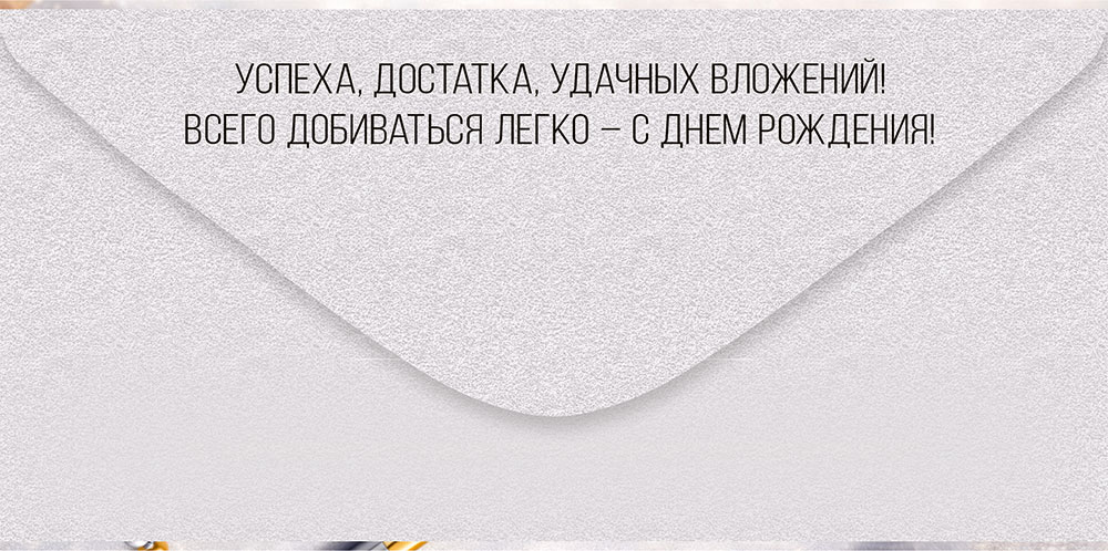 Поздравительный конверт для денег «С Днем рождения!» с современным придется по вкусу любому мужчине. Композиция из изысканных подарочных элементов и элегантных аксессуаров создает атмосферу роскоши и торжественности. Теплые золотые оттенки и благородные текстуры придают дизайну ощущение статусности и утонченности вкуса. Также внутри находятся теплые стихи с приятными пожеланиями. Данный дизайнерский конверт для денег идеально подойдет в качестве основного подарка или как приятное дополнение к нему. Внутрь можно поместить любую денежную сумму, подарочный сертификат или билеты на концерт. Благодаря прочным материалам производства и качеству печати изделие удобно транспортировать и хранить – оно надолго сохранит свой яркий внешний вид, не помнется и не выцветет, что делает его не только хорошим подарком, но и прекрасным памятным сувениром!