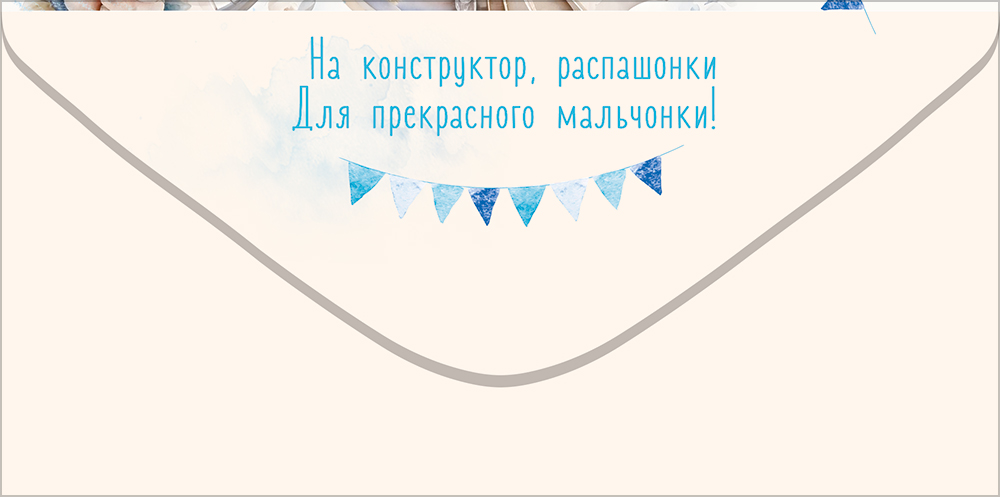 Поздравительный конверт для денег «На игрушки-погремушки» с элегантным дизайном преобразит любое торжество. Нежная композиция с коляской, плюшевым медвежонком и воздушными шарами выполнена в спокойной голубой гамме. Светлые оттенки и мягкие переходы идеально подходят для такого чудесного события, как рождение малыша. Детали продуманы до мелочей, благодаря чему дизайн выглядит легким, воздушным и очень уютным. Также внутри находятся теплые стихи с приятными пожеланиями. Данный дизайнерский конверт для денег идеально подойдет в качестве основного подарка или как приятное дополнение к нему. Внутрь можно поместить любую денежную сумму, подарочный сертификат или билеты на концерт. Благодаря прочным материалам производства и качеству печати изделие удобно транспортировать и хранить – оно надолго сохранит свой яркий внешний вид, не помнется и не выцветет, что делает его не только хорошим подарком, но и прекрасным памятным сувениром!