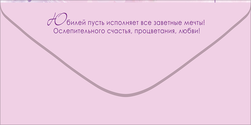 Поздравительный конверт для денег «С Юбилеем!» с нежным дизайном преобразит любое торжество. Изделие украшено изображением с пышным букетом в сиренево-розовой гамме. Легкие переходы цвета и аккуратно проработанные лепестки создают эффект объема и живости. Дизайн передает атмосферу радости, искренности и праздничной утонченности. Также внутри находятся теплые стихи с приятными пожеланиями. Данный дизайнерский конверт для денег идеально подойдет в качестве основного подарка или как приятное дополнение к нему. Внутрь можно поместить любую денежную сумму, подарочный сертификат или билеты на концерт. Благодаря прочным материалам производства и качеству печати изделие удобно транспортировать и хранить – оно надолго сохранит свой яркий внешний вид, не помнется и не выцветет, что делает его не только хорошим подарком, но и прекрасным памятным сувениром!