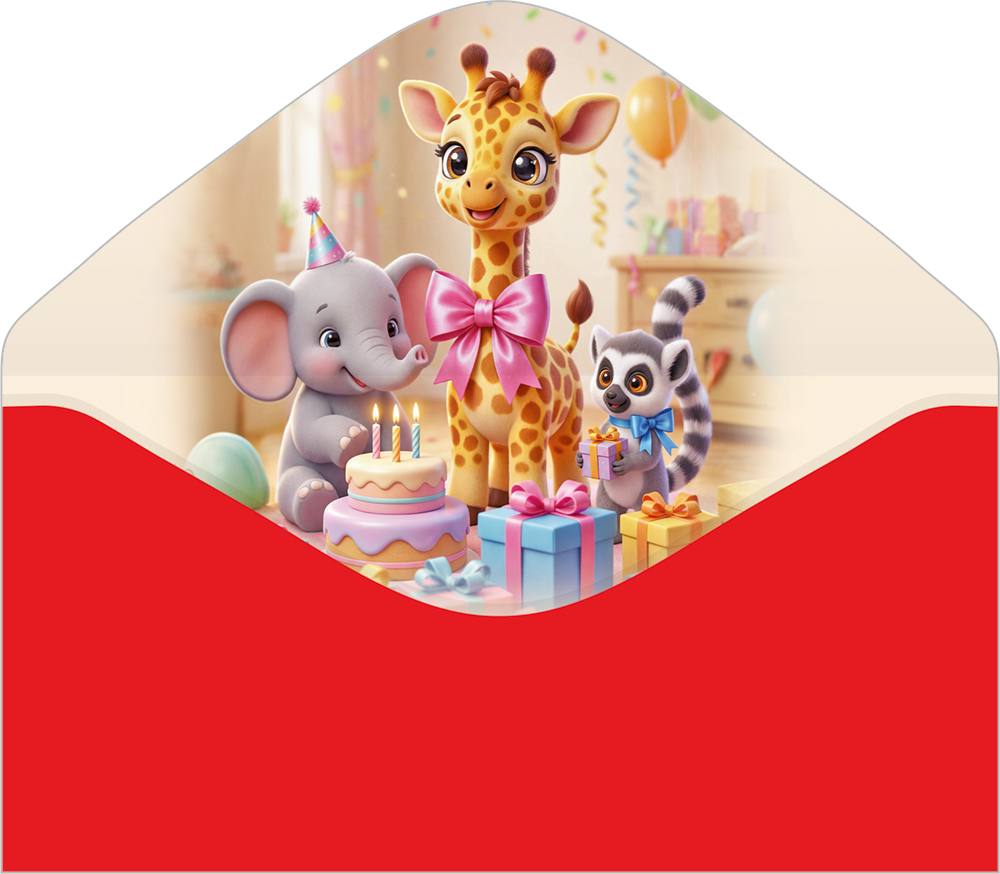 Поздравительный конверт для денег «С Днём рождения!» с мультяшным дизайном преобразит любое торжество. Милый и тёплый дизайн с дружелюбными персонажами создаёт атмосферу праздника и радости. Очаровательные животные, окружённые подарками, вызывают улыбку и ассоциируются с детским весельем. Пастельные оттенки и мягкое освещение делают композицию нежной и уютной, подчёркивая сказочное настроение. Также внутри находятся стихи с приятными пожеланиями. Данный дизайнерский конверт для денег идеально подойдет в качестве основного подарка или как приятное дополнение к нему. Внутрь можно поместить любую денежную сумму, подарочный сертификат или билеты на концерт. Благодаря прочным материалам производства и качеству печати изделие удобно транспортировать и хранить – оно надолго сохранит свой яркий внешний вид, не помнется и не выцветет, что делает его не только хорошим подарком, но и прекрасным памятным сувениром!
