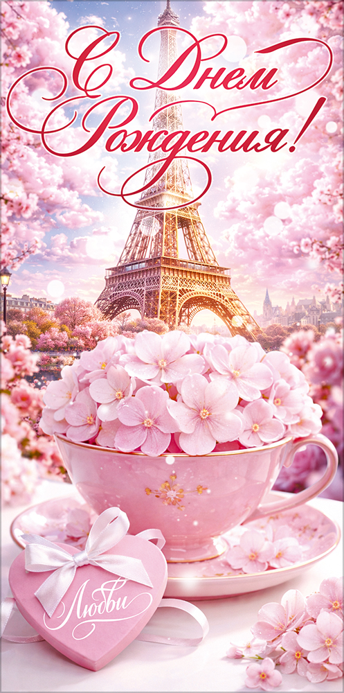 Поздравительный конверт для денег «С Днем Рождения!» преобразит любое торжество! Романтичный дизайн в виде цветущего Парижа точно придется по вкусу мечтательным натурам. Розовая гамма делает общую композицию очень легкой и нежной, а передний план с чайной чашечкой из тонкого фарфора прекрасно сочетается с Эйфелевой башней. Также внутри находится текст с приятными пожеланиями. Данный дизайнерский конверт для денег идеально подойдет в качестве основного подарка или как приятное дополнение к нему. Внутрь можно поместить любую денежную сумму, подарочный сертификат или билеты на концерт. Благодаря прочным материалам производства и качеству печати изделие удобно транспортировать и хранить – оно надолго сохранит свой яркий внешний вид, не помнется и не выцветет, что делает его не только хорошим подарком, но и прекрасным памятным сувениром!