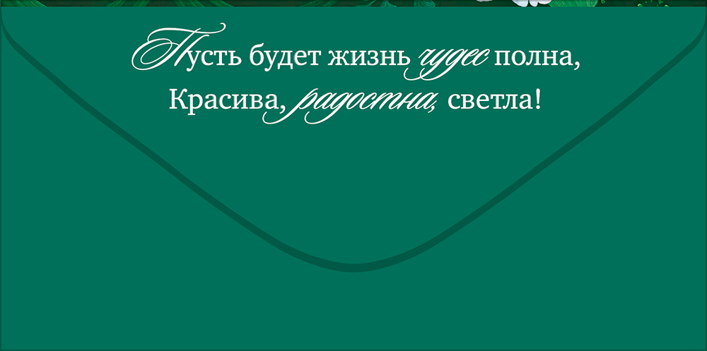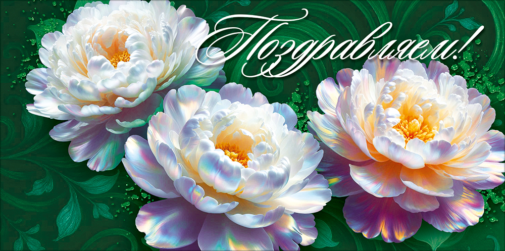 Поздравительный конверт для денег «Поздравляем!» с элегантным дизайном преобразит любое торжество. Композиция из пышных белых пионов на насыщенном изумрудном фоне создает ощущение торжественности и утонченности. Перламутровые переливы лепестков придают изображению глубину и живость, делая конверт по-настоящему выразительным. Несмотря на насыщенную палитру, дизайн смотрится гармонично и не перегружен деталями. Поверхность украшена фисташковыми блестками в лаке, который предотвращает их отслаивание и добавляет деликатное сияние. Также внутри находится текст с приятными пожеланиями. Данный дизайнерский конверт для денег идеально подойдет в качестве основного подарка или как приятное дополнение к нему. Внутрь можно поместить любую денежную сумму, подарочный сертификат или билеты на концерт. Благодаря прочным материалам производства и качеству печати изделие удобно транспортировать и хранить – оно надолго сохранит свой яркий внешний вид, не помнется и не выцветет, что делает его не только хорошим подарком, но и прекрасным памятным сувениром!