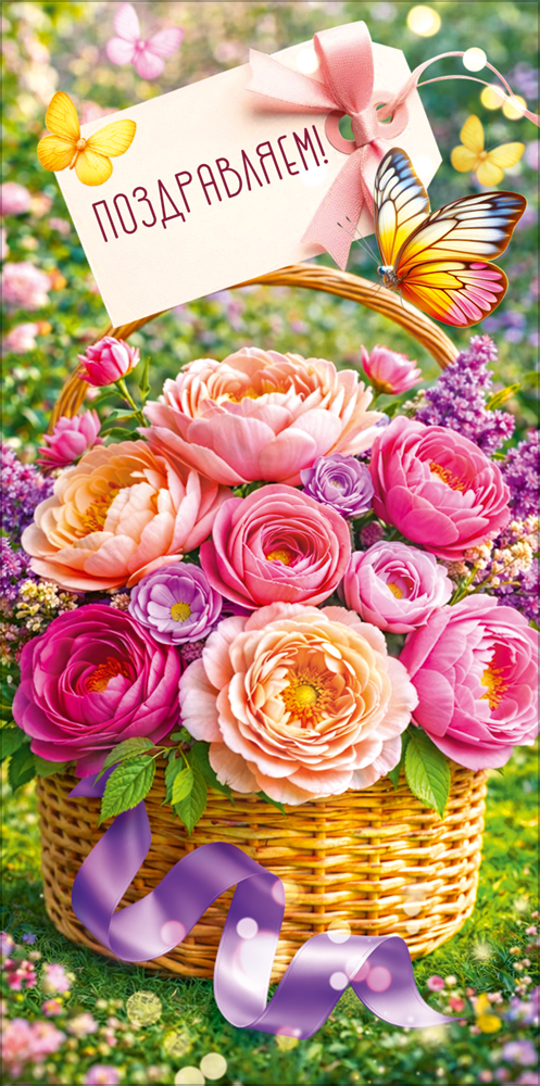 Поздравительный конверт для денег «Поздравляем!» преобразит любое торжество! Дизайн изделия выполнен в яркой весенней стилистике: корзинка благоухающих пионов, сирени и гипсофил в ярких оттенках задает жизнерадостное, позитивное настроение. Порхающие бабочки, сочная трава и фон в виде цветущего сада добавят легкости и спокойствия. Также внутри находится текст с приятными пожеланиями. Данный дизайнерский конверт для денег идеально подойдет в качестве основного подарка или как приятное дополнение к нему. Внутрь можно поместить любую денежную сумму, подарочный сертификат или билеты на концерт. Благодаря прочным материалам производства и качеству печати изделие удобно транспортировать и хранить – оно надолго сохранит свой яркий внешний вид, не помнется и не выцветет, что делает его не только хорошим подарком, но и прекрасным памятным сувениром!