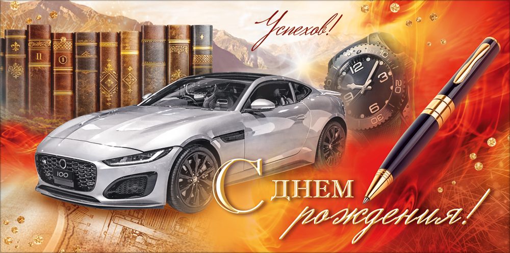 Поздравительный конверт для денег «С Днем рождения!» с интересным дизайном преобразит любое торжество. Яркая композиция с изображениями стильного серебристого автомобиля, наручных часов, автоматической ручки, стопки книг в кожаных переплетах и необычными текстурами делает внешний вид конверта запоминающимся и привлекательным. Всполохи красных и желтых волн в сочетании с россыпью блестящих стразов придают сюжету красочности и смягчают его. На фоне – горная гряда, символизирующая стремление к новым открытиям и достижениям. Внутрь можно поместить любую денежную сумму, подарочный сертификат или билеты на концерт. Благодаря прочным материалам производства и качеству печати изделие удобно транспортировать и хранить – оно надолго сохранит свой яркий внешний вид, не помнется и не выцветет, что делает его не только хорошим подарком, но и прекрасным памятным сувениром!