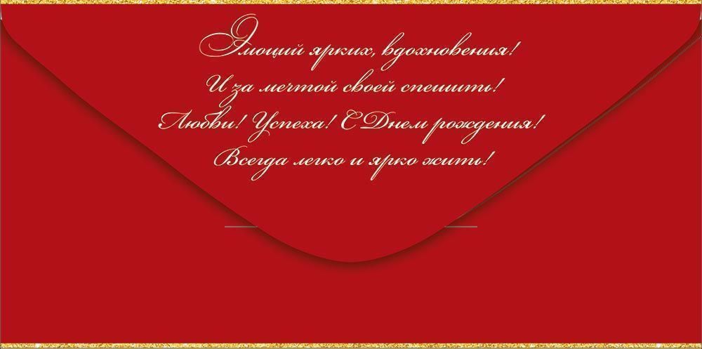 Конверт для денег формата евро предназначен для оформления денежных подарков и сертификатов к дню рождения и рассчитан на использование в розничной продаже и в оптовых поставках для торговых сетей, сувенирных отделов и корпоративных закупок. Изделие изготовлено из плотного картона, обеспечивающего форму и устойчивость к сгибам при транспортировке и хранении, что позволяет без деформации размещать конверты в стандартных лотках, настольных и напольных стойках. Готовый размер 168 × 84 мм подходит для размещения купюр распространённых номиналов без дополнительного подгиба, а также для вложения подарочных карт и небольших поздравительных записок. Лицевая сторона оформлена полноцветной печатью с крупным изображением красной розы на золотистом фоне и надписью «С Днём Рождения!», что делает тематику изделия однозначно читаемой на полке и упрощает выкладку по праздникам. Золотые блестки в лаке создают дополнительный декоративный эффект, при этом защитный слой лака снижает риск истирания рисунка при частом контакте и перемещении в коробах или кассетах. Внутри предусмотрен печатный поздравительный текст, что позволяет использовать конверт как самостоятельный элемент подарка без необходимости подбора отдельной открытки; при этом остаётся свободное поле для личной подписи. Материал и тип печати подобраны таким образом, чтобы сохранить устойчивость красок к выцветанию при стандартном освещении торгового зала и при кратковременном воздействии солнечного света. Конверты поставляются по 10 штук, что удобно для инвентаризации, планирования полочного запаса и формирования ассортиментных матриц по праздничной группе. Изделие подходит для розничной продажи поштучно, для комплектации подарочных наборов, а также для корпоративных поздравлений сотрудников и партнёров, когда требуется единый визуальный стиль и предсказуемое качество исполнения.