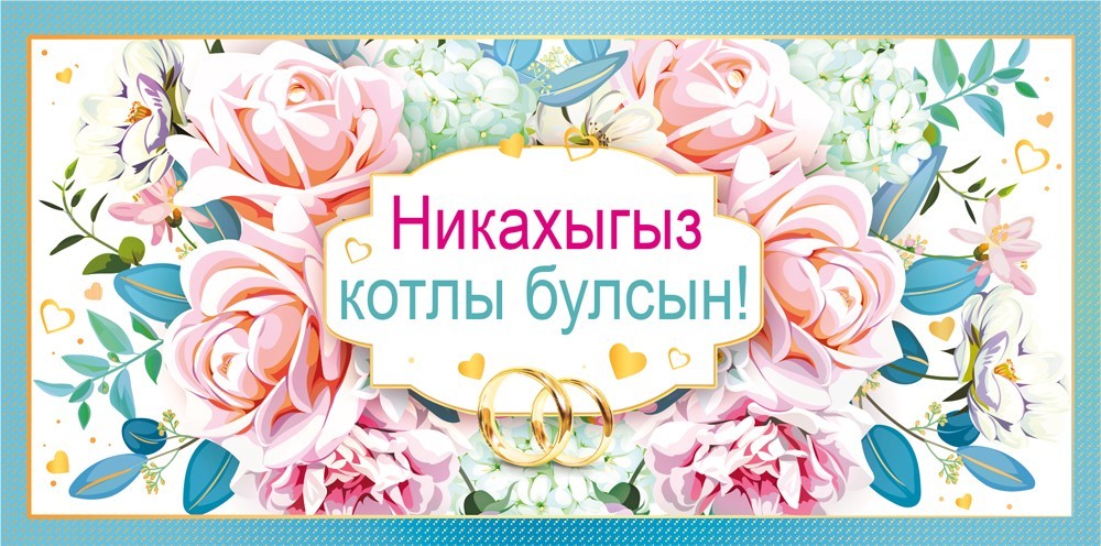 Конверт для денег евроформата предназначен для оформления денежного подарка на никях и другие свадебные торжества. Изделие выполнено из плотного картона, что обеспечивает достаточную жесткость, устойчивость к деформации и аккуратный внешний вид при хранении и транспортировке крупными партиями. Габариты готового изделия 168 × 84 мм позволяют удобно размещать внутри купюры стандартного размера без сгибов, что важно как для розничного использования, так и при формировании ассортимента в оптовых поставках. Лицевая сторона оформлена цветочной композицией в спокойной пастельной гамме с акцентом на центральную надпись на татарском языке «Никахыгыз котлы булсын!» и изображением обручальных колец, что однозначно обозначает тематику и облегчает покупателю выбор изделия под конкретное событие. Внутри конверт без текста, что дает возможность универсального применения: можно использовать для дарения денежных средств, подарочных сертификатов или небольших вложений, а также дополнять индивидуальными подписями от руки. Поверхность украшена глянцевым УФ-лаком, который подчеркивает элементы дизайна, повышает стойкость печати к истиранию и уменьшает риск выцветания при длительном хранении на витрине или на складе. Конверт поставляется по 10 штук, что удобно для оптимизации выкладки, планирования закупок и формирования равномерного ассортимента по свадебной тематике. Компактный формат и стандартная прямоугольная форма обеспечивают совместимость с большинством витринных стоек, упаковочных коробов и почтовых отправлений, а также упрощают транспортировку и учет на складе.