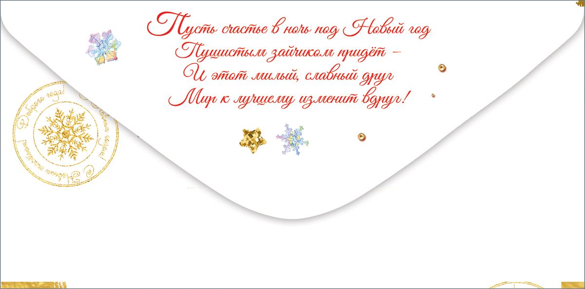Конверт для денег формата евро предназначен для оформления денежного подарка к новогодним праздникам и может использоваться в розничной продаже поштучно или как позиция для оптовых закупок в сезонных коллекциях. Изделие выполнено из плотной бумажной основы, обеспечивающей стабильную геометрию и сохранность купюр при транспортировке и хранении. Готовый размер конверта составляет 168 × 84 мм, что позволяет удобно размещать в нем стандартные банкноты без сгибов и деформации, а также при необходимости вкладывать поздравительную записку. На лицевой стороне размещена новогодняя композиция с зайцем в зимней одежде и надписью «Подарок на Новый год», дополненная декоративными снежинками; используется фигурная вырубка, создающая выразительный контур и аккуратный край, что важно при выкладке товара на витрине и формировании подарочных наборов. Отделка выполнена с применением золотых блесток в лаке, за счет чего отдельные элементы рисунка имеют умеренный глянцевый эффект и устойчивы к истиранию при стандартной эксплуатации, не осыпаются при многократном перекладывании и фасовке. Конверт рассчитан на использование в качестве универсального упаковочного элемента для денежных подарков, подарочных сертификатов и плоских вложений подходящего формата в частных и корпоративных поздравлениях. Плотная бумага позволяет сохранять форму при штабелировании, конверты удобно упаковываются в стандартные короба и не требуют специальных условий хранения, что облегчает логистику для оптовых покупателей. В одной упаковке 10 изделий, что удобно для формирования ассортиментных полок, сезонных предложений и комплектования подарочных наборов различного уровня. Дизайн ориентирован на новогоднюю тематику и подходит для взрослых и детей, что расширяет сферу применения конверта в розничных и корпоративных продажах.
