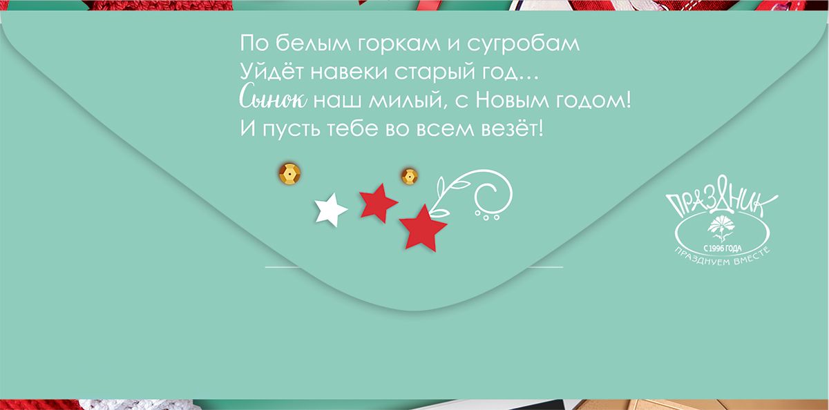 Конверт для денег формата «Евро» предназначен для оформления денежного подарка к Новому году и ориентирован на обращение к сыну: на лицевой стороне размещена надпись «С Новым годом, сыночек!». Изделие изготовлено из плотного картона, что обеспечивает стабильную геометрию, устойчивость к изгибам и сохранность содержимого при транспортировке и выкладке. Глянцевый УФ-лак по лицевой стороне подчёркивает элементы новогоднего дизайна, повышает износостойкость печати и защищает изображение от истирания при частом контакте с руками, что важно для оптовых поставок и длительного хранения на складе или в торговом зале. Фигурная вырубка придаёт конверту завершенный подарочный вид и облегчает позиционирование товара в ассортименте как готового решения для денежного подарка без дополнительной упаковки. Габариты готового изделия 168 × 84 мм позволяют размещать внутри стандартные купюры без сгибания, а также небольшие поздравительные вкладыши. Внутренняя часть рассчитана на размещение денег и краткого личного пожелания, внешний текст уже задаёт тематическое новогоднее обращение, что сокращает время выбора конечного покупателя и делает товар удобным для массовой сезонной закупки. Конверт подходит для выкладки на полках, в прикассовой зоне и в тематических новогодних развалах, компактный размер облегчает транспортировку крупными партиями и хранение в коробах. Плотный картон сохраняет форму даже при многоярусной укладке, что снижает риск брака и возвратов. Дизайн с новогодними атрибутами ориентирован на сезонный спрос и может использоваться как дополнение к основному подарку или как самостоятельный вариант денежного поздравления. В одной упаковке — 10 конвертов, что удобно для формирования мелкооптовых и розничных партий, а также для включения позиции в готовые подарочные наборы.