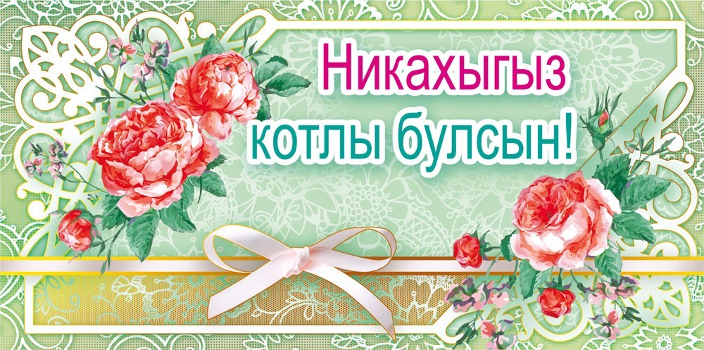 Конверт для денег формата «Евро» предназначен для оформления денежного подарка к никяху и может использоваться как в розничной, так и в оптовой торговле. Изделие изготовлено из плотного картона, что обеспечивает стабильную геометрию и сохранность купюр при хранении, транспортировке и вручении. Готовый размер конверта 168 × 84 мм соответствует распространённым стандартам денежного конверта, благодаря чему его удобно закладывать в поздравительные наборы, комбинировать с открытками и использовать в готовых подарочных комплектах. Лицевая сторона оформлена тематической композицией с крупными розами на светло-зелёном фоне, декоративными орнаментами и ленточным элементом, на центральном поле размещено поздравление на татарском языке «Никахыгыз котлы булсын!», что позволяет применять конверт именно для свадебного мусульманского торжества. Внешняя поверхность дополнительно обработана глянцевым УФ-лаком, который подчёркивает цветовую насыщенность печати, повышает износостойкость, защищает изображение от истирания и придаёт изделию презентабельный вид даже при многократном перекладывании в торговых стеллажах. Внутренняя часть без текста, что даёт возможность дописать индивидуальное пожелание, указать сумму или контактные данные дарителя. Конверт рассчитан на размещение стандартных банкнот без сгиба и удобен для использования в кондитерских, сувенирных и книжных магазинах, в отделах подарочной упаковки, а также в организациях, формирующих корпоративные подарки на никях. Плотный картон сохраняет форму при штабелировании, что упрощает хранение и транспортировку оптовых партий. В упаковке 10 штук, что позволяет планировать закупки с учётом сезонного спроса и формировать ассортиментную матрицу по тематике свадебных и религиозных праздников.