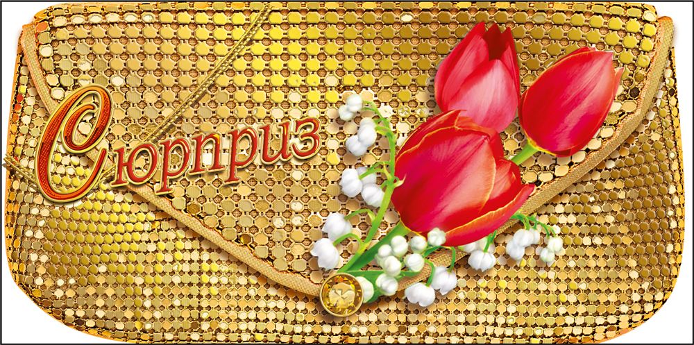 Конверт для денег формата евро предназначен для безопасного и аккуратного вручения денежных подарков и подарочных сертификатов. Изделие выполнено из плотного картона, обеспечивающего достаточную жесткость, устойчивость к изгибам и сохранность формы при хранении и транспортировке крупными партиями. Размеры конверта 168 × 84 мм позволяют размещать стандартные купюры без сгибов, что важно как для розничного использования, так и при массовой выдаче подарков в корпоративных программах или торговых сетях. На внешней стороне размещена композиция в виде золотистой сумочки с декоративным орнаментом и изображением тюльпанов и веточек ландыша, поверх которой выделено слово «Сюрприз». Для оформления применена фольга золотая, создающая выраженный металлический блеск отдельных элементов и повышающая износостойкость лицевой поверхности за счет дополнительного слоя. Внутренняя сторона без текста, что делает конверт универсальным решением для различных поводов: дней рождения, профессиональных праздников, поощрений сотрудников, сезонных акций и частных поздравлений. Отсутствие заранее напечатанных надписей упрощает включение товара в типовые подарочные наборы и позволяет использовать единый артикул для разных целевых аудиторий. Конверт удобен для складского учета и выкладки: плоская форма и стабильные габариты обеспечивают компактное размещение в стеллажах и транспортной таре, минимизируют риск деформации при штабелировании. В упаковке 10 штук, что подходит как для мелкооптовых закупок, так и для формирования более крупных партий. Изделие совместимо с большинством стандартных полочных и кассовых дисплеев, может использоваться в магазинах подарков, книжных и канцелярских отделах, а также в корпоративных службах персонала и отделах маркетинга для оформления материального поощрения и подарочных сертификатов.