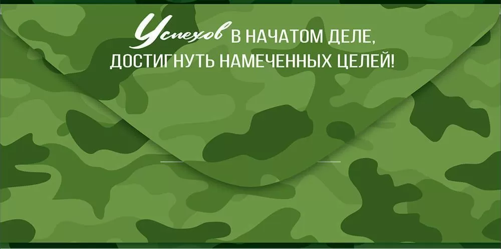 Конверт для денег "С Днем защитника Отечества!" в камуфляжном стиле. Стильный дизайн и добрые пожелания — залог успешного поздравления.