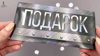Универсальный мужской конверт для денег "Подарок!" со сдержанным дизайном и отделкой голографическим металлом. Переливающиеся элементы и приятные слова — залог идеального поздравления.