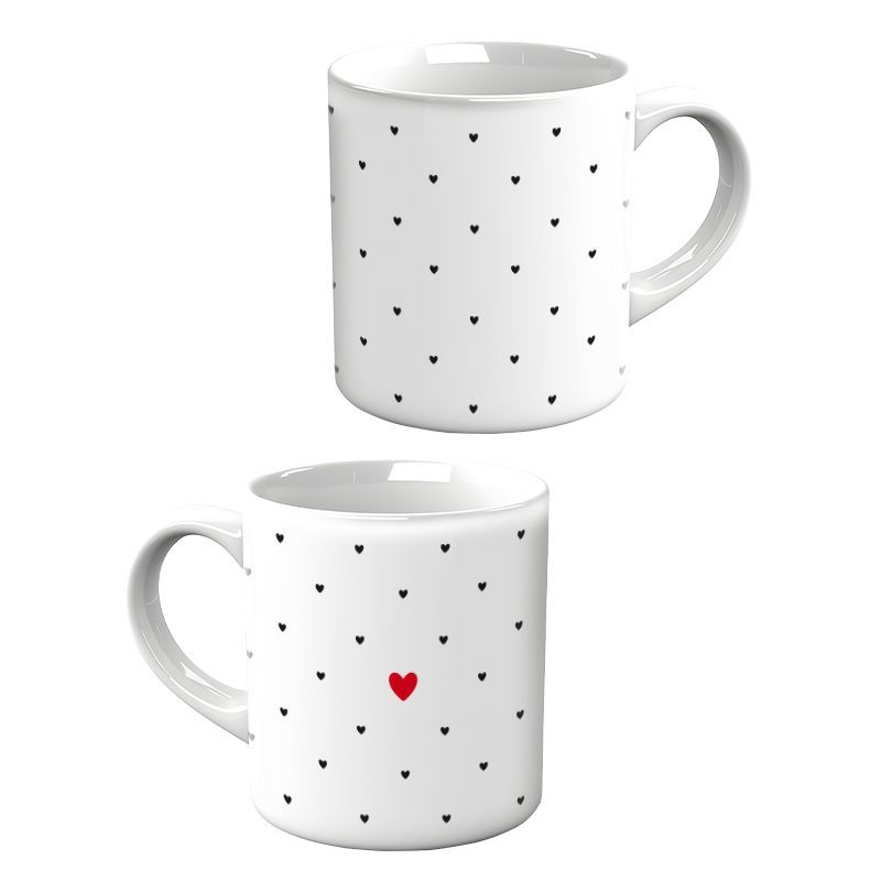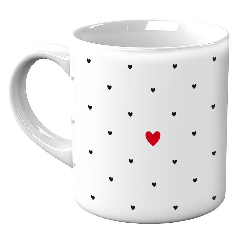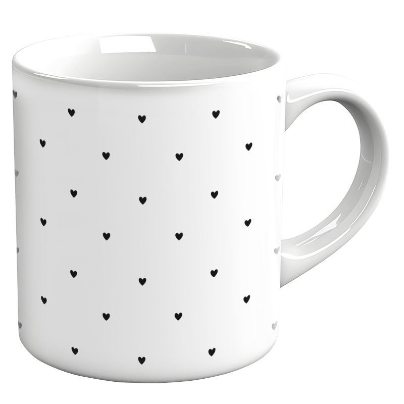 Кружка керамическая объёмом 330 мл предназначена для регулярного использования в бытовых и офисных условиях и рассчитана на горячие и холодные напитки стандартного объёма порции. Изделие выполнено из плотной керамики с равномерными стенками, что обеспечивает устойчивость к термическим нагрузкам при ежедневном заваривании чая, кофе и других напитков. Гладкая белая поверхность с нанесённым по периметру мелким рисунком в виде чёрных сердечек и одним акцентным красным элементом формирует нейтральный, но легко считываемый дизайн, подходящий для широкого ассортимента подарочных и повседневных коллекций. Размеры готового изделия около 120 мм в длину с учётом ручки и 80 мм в ширину по корпусу упрощают расчёт места на полках, в коробах и транспортной таре при формировании оптовых партий. Стандартная форма цилиндра с прямыми стенками удобна для штабелирования в индивидуальных коробках и минимизирует риск повреждений при перевозке. Керамический материал устойчив к образованию запахов и прост в санитарной обработке, допускает ручное мытьё с применением бытовых моющих средств; при формировании ассортимента для HoReCa и офисов это позволяет поддерживать единый внешний вид посуды при интенсивной эксплуатации. Эргономичная ручка рассчитана на удобный хват одной рукой и сохраняет комфортную температуру при наливе горячих напитков. Универсальный объём 330 мл подходит для подачи чая, кофе, какао, напитков быстрого приготовления и может использоваться как самостоятельная единица или как часть тематических наборов ко Дню святого Валентина, семейным и корпоративным событиям. В упаковке 1. Кружка может включаться в матрицу магазинов посуды, подарков, сувенирной и праздничной продукции как базовая позиция с устойчивым спросом, удобная для выкладки поштучно и комплектования наборов.