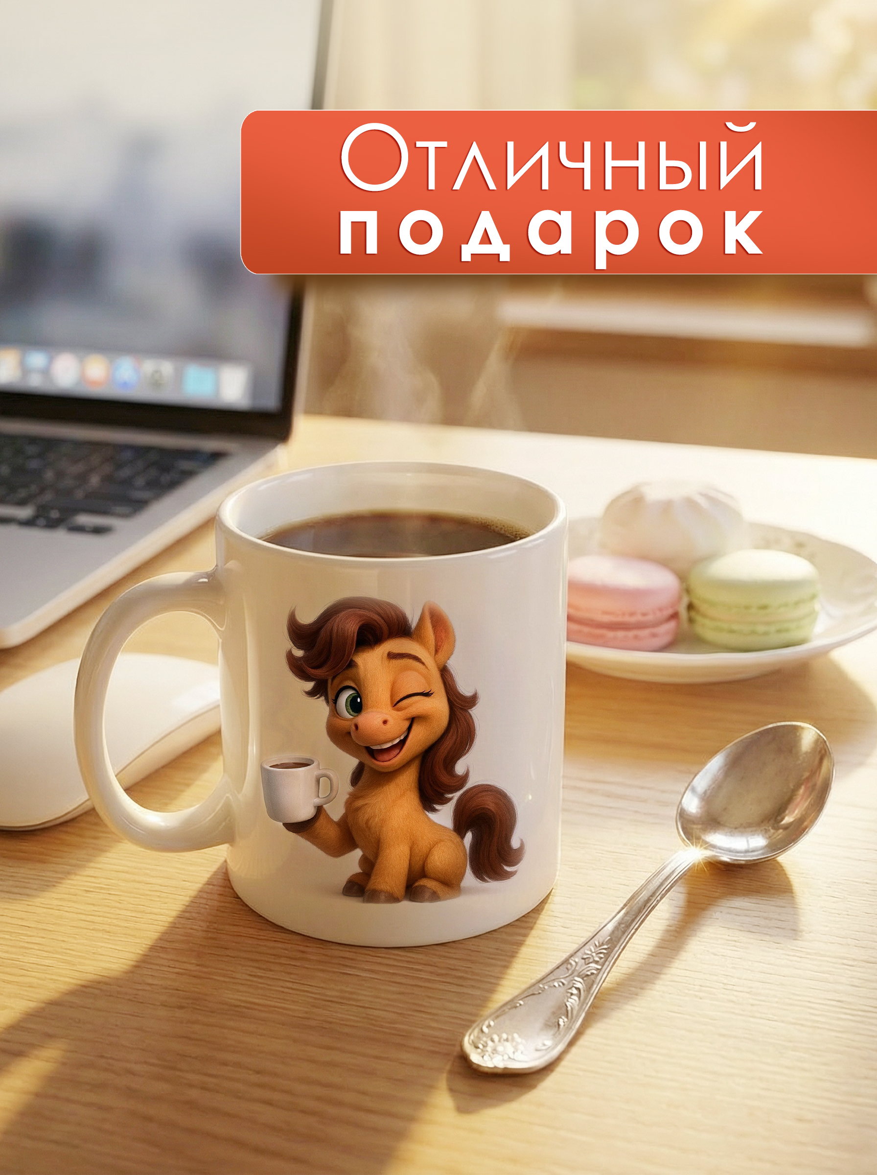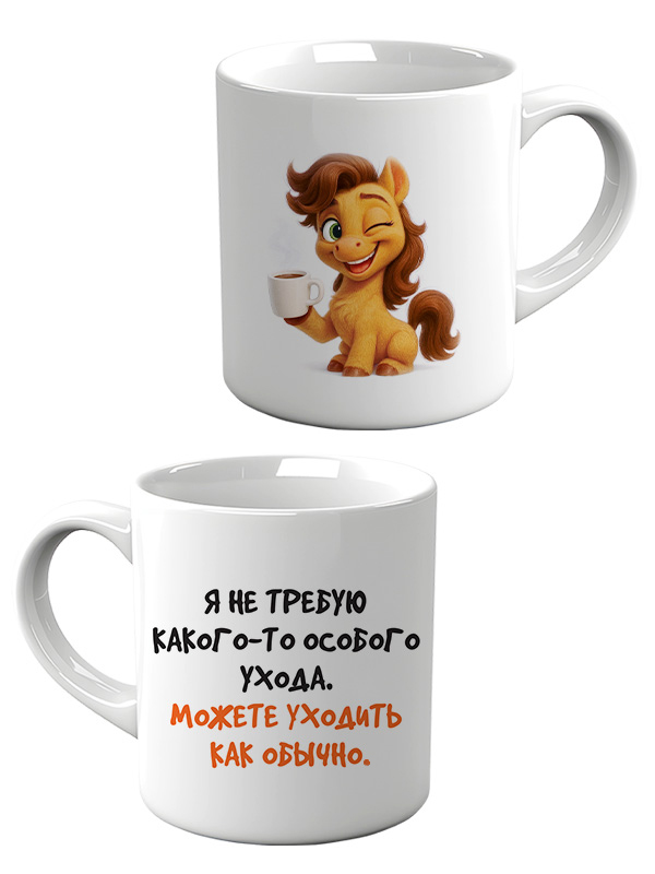 Кружка керамическая объёмом 330 мл предназначена для повседневного использования в офисе, дома и в сегменте HoReCa, а также подходит для формирования тематических подарочных и сувенирных наборов. Изделие выполнено из керамики с ровной белой поверхностью без дополнительной отделки, что обеспечивает стабильное качество печати и единообразный внешний вид в партии. На наружной стороне размещено цветное изображение персонажа‑пони с чашкой, на оборотной стороне – контрастная надпись «Я не требую какого-то особого ухода. Можете уходить как обычно.», что делает кружку готовым подарочным решением без необходимости дополнительного оформления. Габариты готового изделия составляют примерно 120 мм в длину с учётом ручки и 80 мм в ширину по корпусу, что удобно при расчёте места на полке, в коробах и при паллетировании. Стандартная цилиндрическая форма и классическая ручка обеспечивают совместимость с большинством офисных кофемашин и бытовых подставок, упрощают хранение и штабелирование при оптовых поставках. Керамический материал устойчив к кратковременному воздействию горячих напитков, подходит для чая, кофе, какао и других горячих и холодных напитков, сохраняет вкус без посторонних запахов. Поверхность легко очищается вручную нейтральными моющими средствами; допускается использование в посудомоечной машине при соблюдении щадящих режимов, что важно при эксплуатации в офисах и кафе с высокой оборачиваемостью посуды. Кружка поставляется по 1 в упаковке, что удобно для розничной выкладки поштучно, комплектования подарков и точного учёта остатков. Универсальный формат 330 мл востребован как у частных пользователей, так и у корпоративных клиентов, а нейтральная по цвету основа в сочетании с ярким принтом позволяет включать изделие в широкий ассортимент тематических коллекций без необходимости изменения основных логистических параметров.