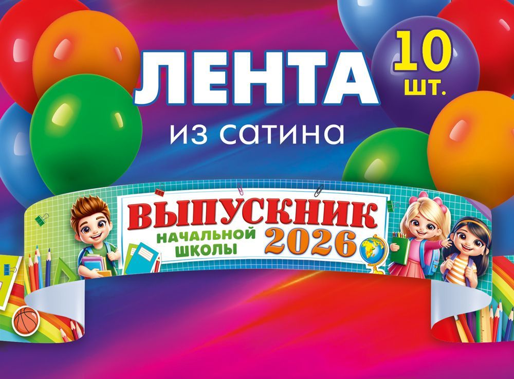 Набор лент «Выпускник начальной школы 2026» (сатин) (дети с учебниками)