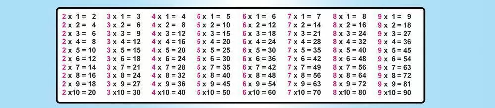 Двусторонняя линейка-закладка из картона, размера 210х46 мм, для книг и учебников с лаковым покрытием с одной стороны и таблицей умножения с другой.